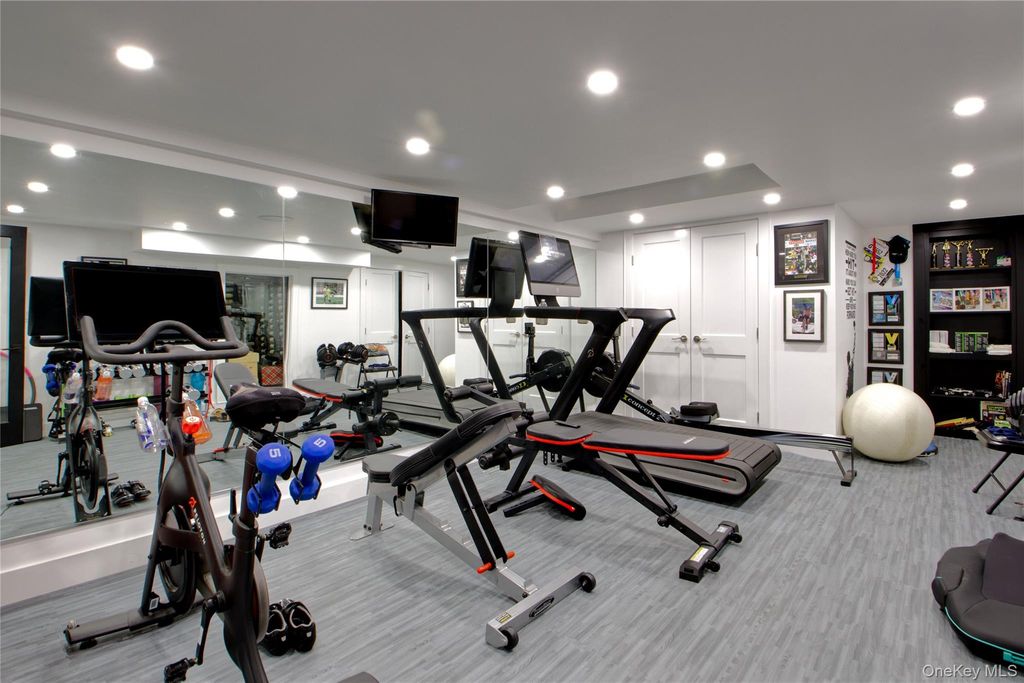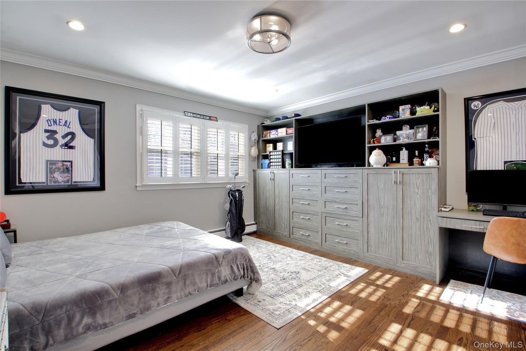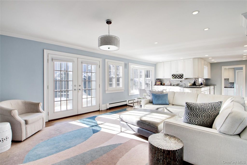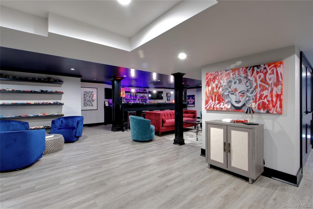 Welcome to 380 Stewart Avenue, a fully renovated residence offering over 4,000 square feet of beautifully finished living space with exceptional flexibility, including two potential primary bedroom suites on both the first and second levels. Thoughtfully updated throughout, the home features gleaming hardwood floors, elegant wainscoting, classic finishes, and newly renovated bathrooms with radiant heated floors. The open-concept kitchen boasts radiant heat, a commercial-size refrigerator, and flows seamlessly into the adjacent mudroom and spacious family room with one of two fireplaces. An oversized first-floor primary suite offers a spa-style bath and an enormous walk-in closet, while the second level includes four additional bedrooms and two full bathrooms, including a second-floor primary option with an en-suite bath and walk-in shower. The fully finished lower level is an entertainer’s dream with a fitness center, wine room, quartz wet bar with ice maker, electric fireplace, and expansive recreation space. Additional highlights include a heated two-car classic garage, manicured lawn with perimeter hedging, multi-car driveway with prestigious John Street access, and a private rear yard with paver stone patio and mature shrubbery, all ideally located near Garden City Village, coffee shops, restaurants, the LIRR, Roosevelt Field shopping, and major highways.