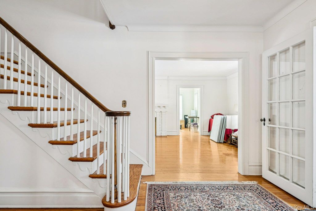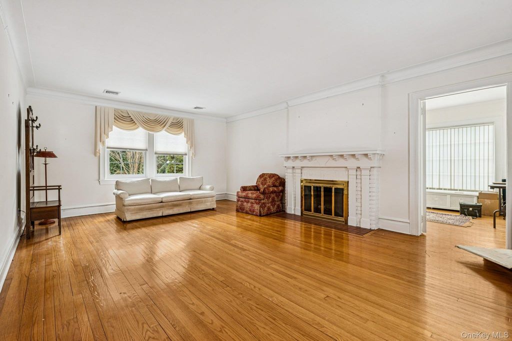 Located in the heart of the prestigious estate section, this brick center hall colonial is conveniently located near to the Merillon (Mineola line) and Nassau Blvd (Garden City line) LIRR stations, schools, parks, shopping and all highways. All common rooms are over-sized with high ceilings, newer windows and hardwood floors throughout. There are four generously sized bedrooms on the second floor and two full baths. The third floor is a walk up attic space with tremendous storage space. The lower level is unfinished with a laundry and outside entrance. This home has a slate roof and detached two car garage and sits on 80x100 midblock property. Homestead and Stratford Schools.
